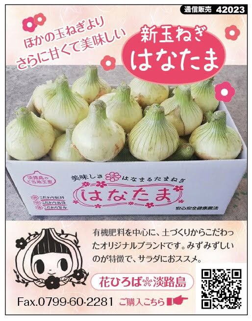 農薬控えめ、土作りに汗水流し、有機肥料を中心に配合した「美味しさはなまるたまねぎ」です。こちらのタマネギは弊社オリジナルブランドです。淡路島の玉ねぎは甘くて柔らかい食感が特徴です。初夏のたまねぎはまだまだ辛み苦みがあまり気になりません。サラダはもちろん、加熱料理にも使えます。
